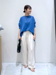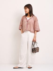 暑くい季節は、コーディネートアイテムの選び方に悩みますよね。アクティブに過ごすことができるパンツですが、暑いのではないだろうかといった心配があるのではないでしょうか。パンツは、足元を気にすることなく過ごせるため重宝しますね。また、甘めテイストのアイテムもスッキリとスタイリッシュに仕上げてくれるメリットもあります。このようなパンツは、シルエット次第で快適に過ごせます。
