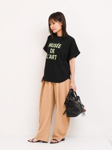 大人のカジュアルコーディネート作りでは、カラー選びがスタイリッシュに見せるポイントです。ロゴやフォトTシャツは、暑い季節のシンプルなコーディネートに欠かせないアイテムです。カジュアルなアイテムは、コーディネートアイテムやカラーを工夫しないと、しっくりこないですよね。こんな時には、モードな雰囲気を楽しめるブラックカラーがピッタリ。スタイリッシュに楽しんではいかがでしょう。