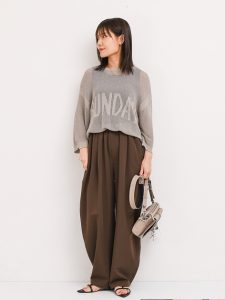 トレンドのメッシュ素材を取り入れながら、ゆるっとしたシルエットのパンツスタイルにすることで大人のリラックススタイルを完成させることができますね。モロッコパンツは、特徴的なシルエットなのでカジュアルすぎてしまうイメージが強いのが悩み。ただし、コーディネートアイテムの選び方や全体のカラートーンの選び方次第でカジュアルな装いも大人っぽく落ち着いた雰囲気に楽しむことができます。