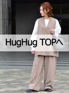 HugHugのアイテムはシルエットが大人仕様なので、カジュアルすぎず大人可愛いスタイルが楽しめます。