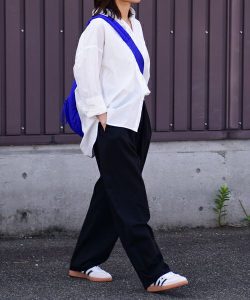 ダークカラーのアイテムをコーディに取り入れる時、注意したいのがコーディネートアイテム。シンプルなパンツコーディネートは、万能スタイルですね。季節を問うことなく活躍してくれるパンツは、バランスよく仕上げることできるので大人世代にはおすすめのアイテム。シャツとコーディネートすることで、カジュアルになりがちなパンツコーディネートも綺麗めに大人っぽく仕上げることができますよ。