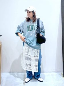 2-2.デニムカラーのセットアップはゆるっと合わせてこなれ感ある雰囲気を楽しんで