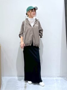 タイトスカートをカジュアルに楽しみたい時は、ボリュームのある足元を選ぶとバランスよく見せることができます。カジュアルなスウェットやナイロンジャケットは、季節の変わり目に便利なアイテム。不要になった時にコンパクトにして収納することができ、軽い着心地を楽しめるなど多くのメリットがあります。コーディネートのアイテムに困った時は、カジュアルアイテムとスニーカーを選んでください。