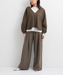 ボトムスは、3タックで立体感のあるシルエットが特徴です。落ち感があり上品なシルエットに仕上げることができ、トレンドのコーディネートを楽しめますよ。セットアップアイテムは、セットはもちろん、単品でも活躍してくれますよ。このようなシンプルなデザインで、コーディネートをアイテムを選ばない1枚は着回し力が高く、幅広い雰囲気を楽しむことができます。ワードローブにあると便利ですよ。