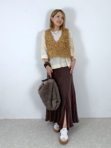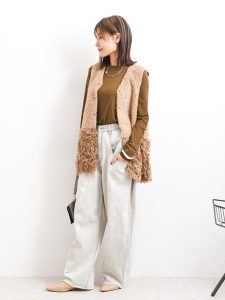 ベストを選ぶ時には、毛足が長めのシャギーやファー素材もおすすめ。シンプルなカットソーを使ったコーディネートに秋らしさをプラスして楽しむことができます。秋らしいコーディネートに近づけるには、素材感とカラー選びがポイント。ブラウンやブラックなど、ダークカラーを選びと落ち着いた雰囲気で秋らしく見せることができます。今回は、今すぐ楽しめるアイテムとコーディネートをご紹介します。