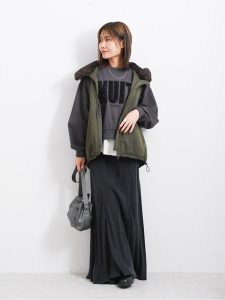 2-2.カジュアルなイメージを和らげたい時にはシンプルなロングスカートとコーディネートする