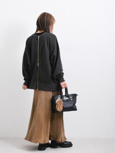 前後で違ったイメージを楽しむことができるプルオーバーは、シンプルでメンズライクな雰囲気を楽しむことができます。甘めのマーメイドスカートとコーディネートすることで、上品で大人っぽく仕上げることができ40、50代の女性でも今っぽく仕上がりますよ。カラーを選ぶ時も、ブラックやダークブラウンといった落ち着いたカラーでまとめると良いでしょう。幅広いスタイルを楽しんでくださいね。
