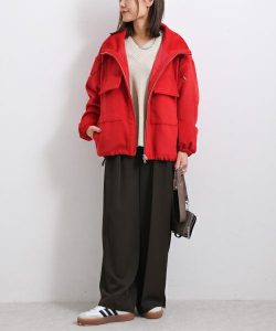 こちらのベストは短めの着丈なので、脚長効果抜群なところも嬉しいですね。ワイドパンツをコーディネートする時、トップスをコンパクトにまとめることでスタイルアップにつなげることができます。ゆったりとしたサイズ感なので、肩が綺麗に落ちるようなシルエットがこなれ感ある雰囲気に見せてくれます。コーディネートしやすいアイテムなので、パンツ以外にもスカート、ワンピースも素敵ですよ。