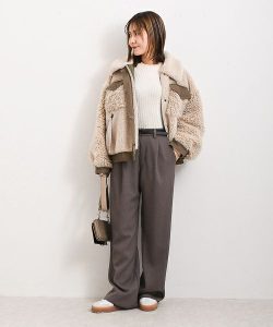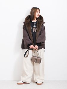 1-1.ボリュームのあるファーアウターは明るめボトムスで軽やかに仕上げる