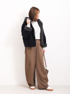 2-2.ボリューム感が魅力のショートアウターはショート丈を選んでバランスよくコーディネートする