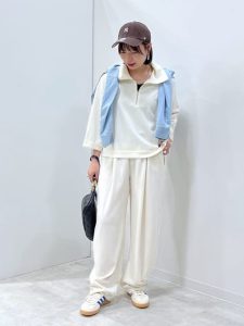 1-2.アイボリーカラーのタックパンツで大人カジュアルコーデを完成させる