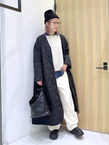 さらに寒い日は、この上からコートを羽織るのもおすすめ。レイヤードの楽しさを満喫できるスタイルです。