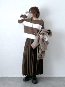 ブラウンを基調にしたワンコーデでまとめることで、落ち着きと統一感が生まれ、ぐっと洗練された印象に仕上がります。