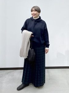ふんわりとしたニットとスカートの組み合わせは、冬の“大人可愛い”の王道。