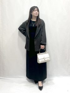 コーディネートにブラックカラーを上手にプラスすることで、全体を引き締めてスタイルアップさせてみてはいかがでしょうか。なりたいスタイルを楽しみましょうね。