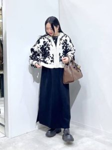ジャガードのフラワー柄が、上品さとカジュアルさを楽しむことができる便利なブルゾンです。軽くて暖かいモールヤーンが使われているため、軽やかな着心地で快適な1枚です。モノトーンカラーのフラワー柄なので、シンプルなトップスに羽織るだけで華やぎをプラスしてくれますよ。短すぎず、長すぎない着丈のブルゾンなので、スカートとパンツなどボトムスを選ぶことなく好相性なのも嬉しいですね。