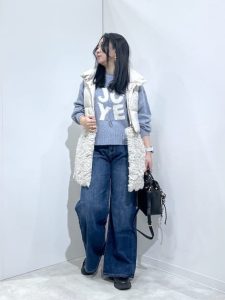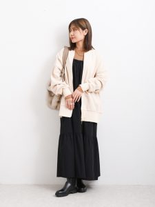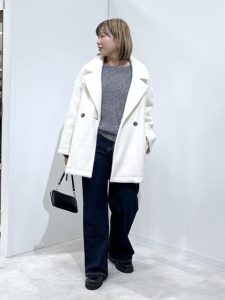 ゆったりとしたサイズ感なので、寒い季節には重ね着することができるのもポイントが高いですよね。テーラードジャケットはかっちりしたイメージが強いシルエットですが、こちらは毛足長めのシャギー素材なのでフェミニンな雰囲気を楽しむことができますよ。素朴な素材感と綺麗めなシルエットが、バランスよく、さまざまなコーディネートにピッタリなアウターとしておすすめの1枚ですよ。