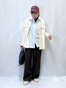 2-2.シャツ×シャツのコーディネートは異なる素材感と絶妙なカラーバランスでスタイリッシュに見せる