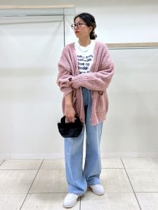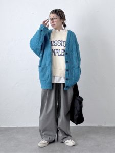 軽く羽織れるカーディガンは温度調整がしやすく、きれいめにもカジュアルにも対応できる万能アイテムです。