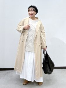 このコーディネートのようなロング丈アウターは、羽織るだけで縦ラインが生まれ、体型カバーと上品見えを同時に叶えてくれます。