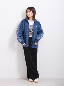 2-2.コンパクトなトラックジャケットはボトムスのボリューム選びがお洒落の分かれ道