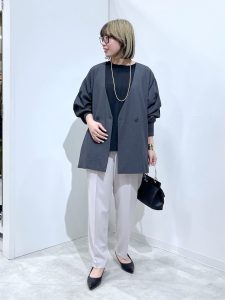 2.40、50代の女性のカジュアルコーディネートを格上げする羽織り