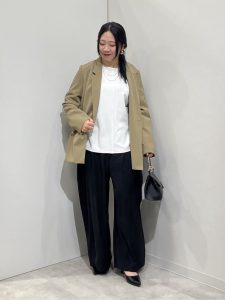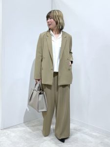 セットアップアイテムは、インナーや小物類が変えるだけで、セレモニーからオフィスコーディネートまで幅広く活躍してくれるところもポイントが高いですね。セットアップ使いはもちろん、単品使いとしてデイリースタイルまで幅広く着回すことができる万能アイテムとしておすすめです。ベージュカラーはワードローブに1枚あるだけで、さまざまなシチュエーショで活躍してくれるのではないでしょうか。