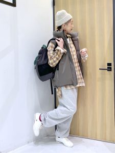 コーディネート10|中綿ベスト×チェックシャツ
