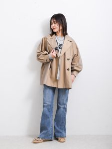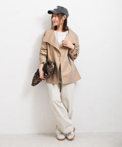 シンプルなコートだからこそ、オフィスからカジュアルコーディネートまで幅広く着こなすことができるのはポイントが高いのではないでしょうか。春のコーディネートでは、カジュアルなアイテムが活躍してくれるシチュエーションも多いでしょう。このような時も、上品な印象のコートがあるだけで雰囲気が変わりますよ。全体のバランスを見ながら、理想のコーディネートを楽しんでみてくださいね。