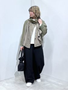 1-3.下半身をカバーしたい時はワイドシルエットのボトムスを選んでIラインに仕上げる