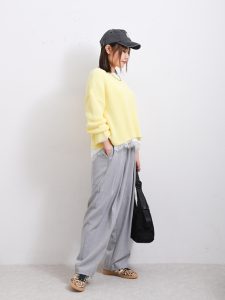 2.ほどよいゆるシルエットは季節感あるカラーアイテムで楽しむ