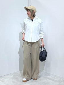 1-1.シンプルな白シャツコーディネートを上品に見せるベージュのワイドパンツ