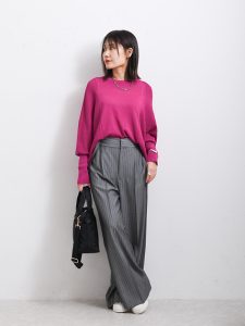 2.パンツのカラーと素材によってイメージが変わるワイドシルエットパンツ