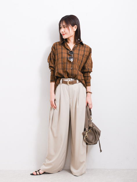 1.とろみ、透け感のある素材を選んで軽やかな大人の春コーデを完成させる
