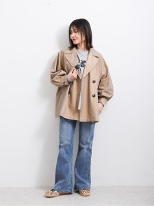 ベーシックな着丈ですが、ふんわりとしているシルエットなのでヒップやウエストラインも上手にカバーしてくれますよ。女性らしいシンプルなデザインなので、ワードローブに1枚あると幅広く活躍してくれるのではないでしょうか。ベージュ、アイボリーと春らしい明るめカラーの展開なので、これからの季節にピッタリですよ、肌馴染みがよく、顔色を明るく見せてくれるため大人世代にもおすすめの1枚。
