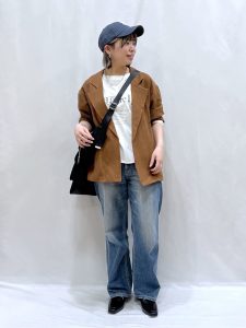 2-2.キャップ、デニムのカジュアルコーディネートもベーシックカラーを選んで落ちついた雰囲気に