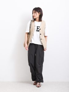 40、50代の女性は、ロゴTシャツ、フォトTシャツといったインパクトあるアイテムが苦手と感じる方も多いのではないでしょうか。こんな時におすすめしたいのが、ジレやベストを1枚プラスするコーディネート。ジャケットと比べて、少しだけカジュアルテイストのジレは気軽にコーディネートに取り入れて欲しいアイテムです。シンプルながら、1枚でイメージをがらりと変えてくれる便利なアイテムです。