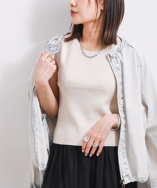 ストーンウォッシュ加工を施し、着るだけでこなれた雰囲気を演出してくれるニットタンク。ほどよくラフな風合いで、シンプルながらスタイリングの主役にもレイヤードにも活躍します。ウォッシュ加工ならではの一点一点異なる表情も魅力で、自分だけの風合いを楽しめる一枚です。