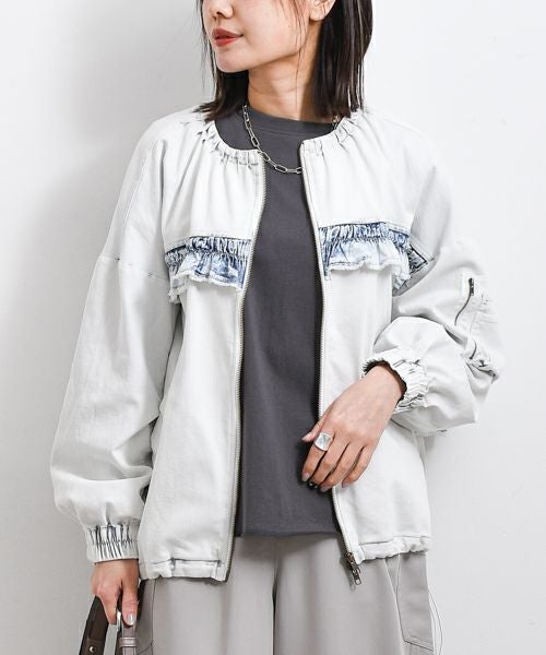 ノーカラーデザインは首元をすっきり見せ、スタイリッシュな印象をあたえてくれます。ドロストとダブルジップ使用で着こなしのアレンジの幅が広がります。