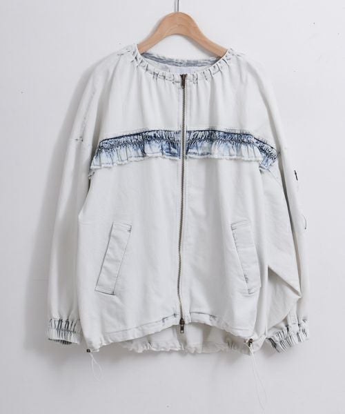 ノーカラーデザインは首元をすっきり見せ、スタイリッシュな印象をあたえてくれます。ドロストとダブルジップ使用で着こなしのアレンジの幅が広がります。