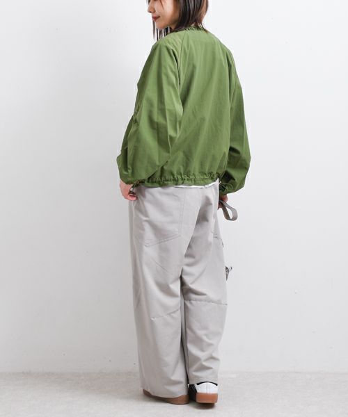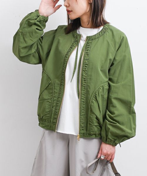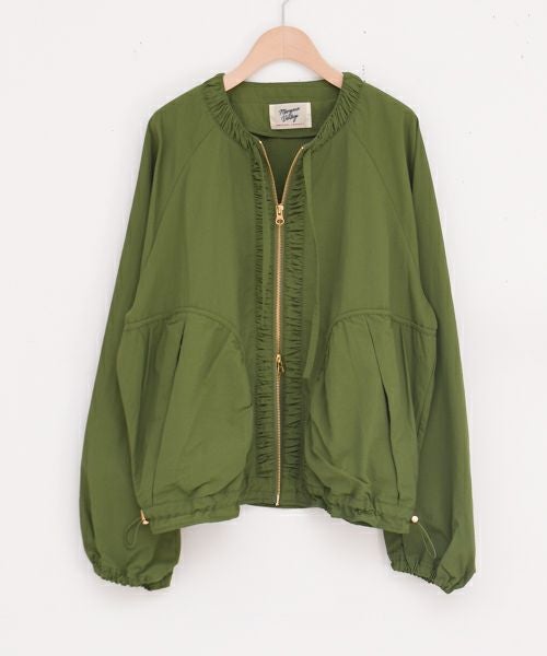 カジュアルながらも上品な雰囲気を纏う、MARGAUX VINTAGEのノーカラーブルゾン。ナイロン100%の撥水素材を使用しており、季節の変わり目に重宝する、機能的でおしゃれなアイテムです。