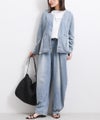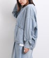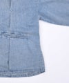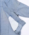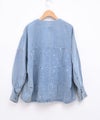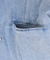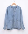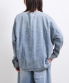 6ozの軽やかなデニム素材に、存在感のある箔プリントを施したノーカラージャケット。首元はすっきりとしたノーカラーデザインで、インナーを選ばず抜け感のある着こなしが可能。箔プリントは一点一点手作業で加工されており、仕上がりには個体差があり、それぞれ異なる表情をお楽しみいただけます。同じものが二つとない、特別感のあるアイテムです。