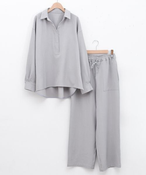素材:【トップス】ポリエステル96%、ポリウレタン4% 【パンツ】ポリエステル96%、ポリウレタン4% 取り扱い:洗濯機洗い可 原産国:中国 モデル:162cm ※測り方や位置、素材の性質により、サイズに誤差が生じる場合がございます。
