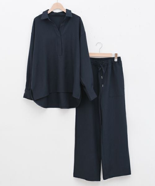 素材:【トップス】ポリエステル96%、ポリウレタン4% 【パンツ】ポリエステル96%、ポリウレタン4% 取り扱い:洗濯機洗い可 原産国:中国 モデル:162cm ※測り方や位置、素材の性質により、サイズに誤差が生じる場合がございます。