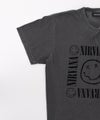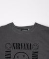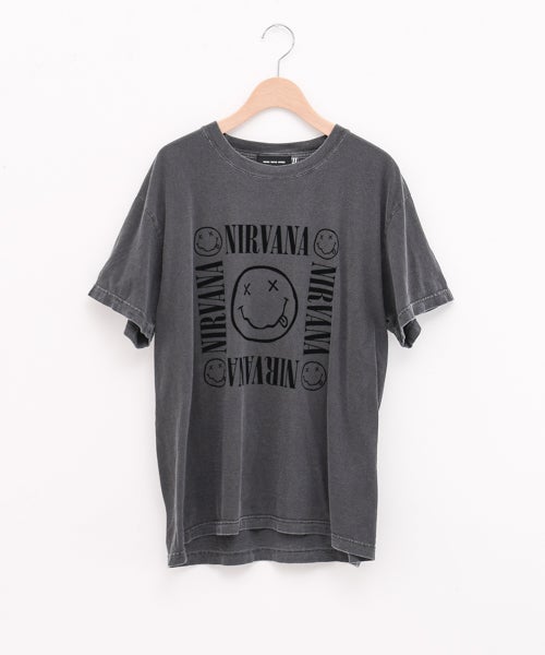 グランジシーンを象徴するバンド NIRVANA のアイコニックなスマイルロゴをあしらった一枚。立体感のあるフロッキープリントで表現されたアートワークが、シンプルながらも存在感を演出します。ピグメント染めのヴィンテージライクな風合いと、程よく抜け感のあるデザインで、1枚着はもちろんレイヤードにも活躍。カジュアルからストリートまで幅広いスタイリングにフィットする、主役級Tシャツです。