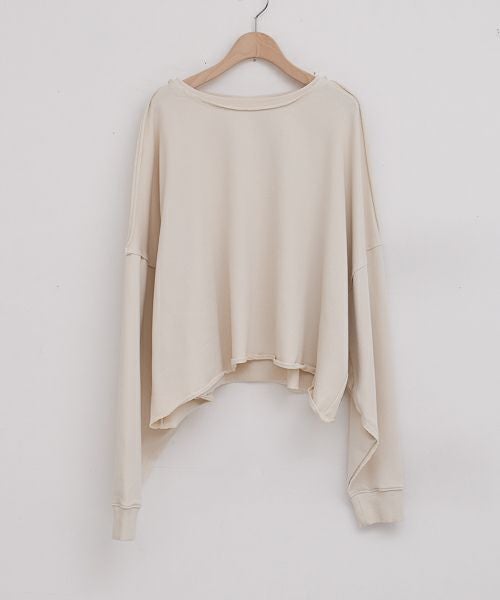 切りっぱなしの抜け感がちょうどいい一枚。カラーによって風合いが異なり、オフホワイトは軽さのあるさらっとした生地感で、ピグメント加工を施したチャコールとオレンジはしっかりとした質感で、ヴィンテージ感のある風合いと経年変化が楽しめます。※ピグメント(濃淡)加工の有無で生地の感触(硬さ、重さ)が異なります。