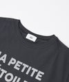 siro de labonteでは定番のコンパクト型のプリントロゴ入りTシャツ。MA PETITE ETOILE はフランス語で『私の小さな星』という意味。プリントはグリッターラメプリントになっていて、カジュアルになり過ぎず大人っぽい仕上がり。シンプルながらもフロントのロゴがアクセントになり、コーデにさりげない存在感をプラスしてくれます。程よくフィットするサイズ感で、ボトムを選ばずバランスよく着こなせるのもポイントです。デニムでカジュアルに、スカートでフェミニンにと幅広いスタイリングが楽しめます。1枚ではもちろん、ジャケットやシャツのインナーとしても活躍する、着回し力の高いアイテムです。