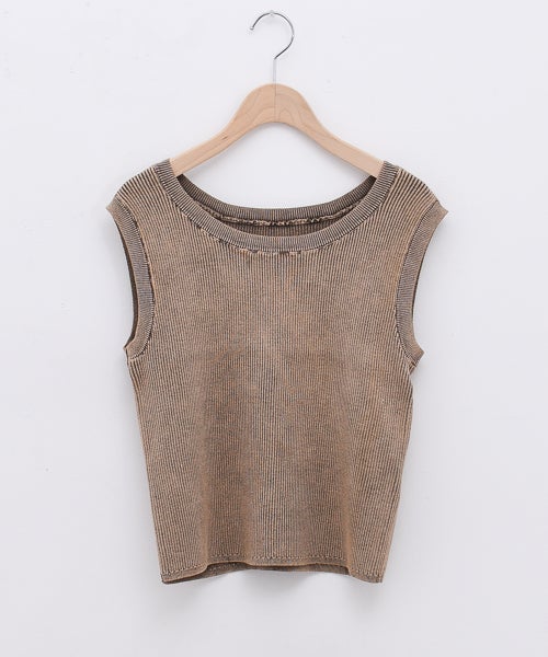 ストーンウォッシュ加工を施し、着るだけでこなれた雰囲気を演出してくれるニットタンク。ほどよくラフな風合いで、シンプルながらスタイリングの主役にもレイヤードにも活躍します。ウォッシュ加工ならではの一点一点異なる表情も魅力で、自分だけの風合いを楽しめる一枚です。