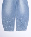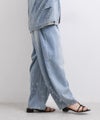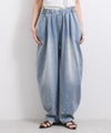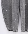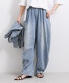 6ozの軽やかなデニム素材に、存在感のある箔プリントを施したモロッコパンツ。ウエストはイージー仕様で、ストレスフリーな穿き心地。ゆったりとしたラインが体のラインを拾いにくく、抜け感のある大人カジュアルを叶えます。箔プリントは一点一点手作業で加工されており、仕上がりには個体差があり、それぞれ異なる表情をお楽しみいただけます。同じものが二つとない、特別感のあるアイテムです。