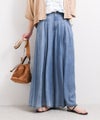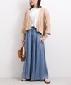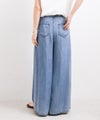 シルクのような自然な光沢感で、柔らかくしなやかな素材です。再生繊維ならではの肌への優しさ、吸水速乾性による快適な着心地を提供します。リラックス感あるワイドシルエットながらも、タック入りのウエスト周りが上品な印象を与え、存在感ある加工とのバランスが絶妙な1着です。